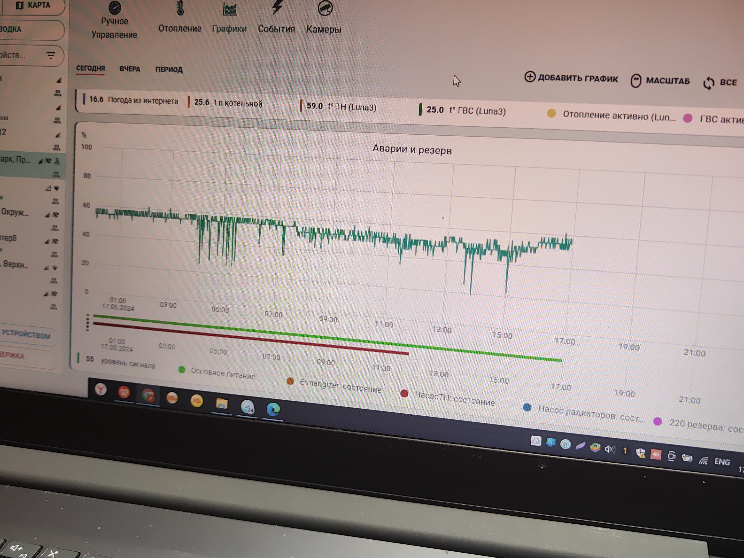 - Оповещения об аварии котла
